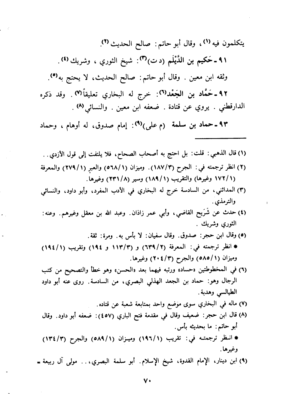 إمام صدوق له أوهام وحماد ابن زيد أثبت منه قال ابن معين إذا رأيت من يقع في حماد بن سلمة فاتهمه على الإسلام وقال الحاكم قد قيل في سوء حفظه وجمعه بين جماعة في إسناد واحد بلفظ واحد ولم يخرج له مسلم في الأصول إلا عن ثابت البناني وله في صحيحه أحاديث في الشواهد عن غير ثابت