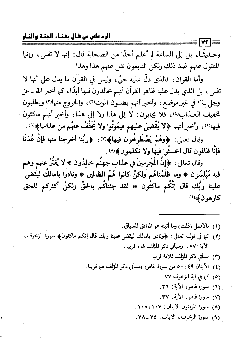 (¬9) سورة الزخرف، الآيات: 74-78.