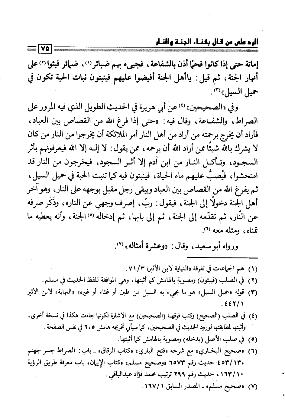 (¬6) "صحيح البخاري" مع شرحه "فتح الباري" "كتاب الرقاق" - باب: الصراط جسر جهنم "13/453 حديث رقم 6573 "وصحيح مسلم" "كتاب الإيمان" باب معرفة طريق الرؤية 10/163، حديث رقم 299 ترتيب محمد فؤاد عبد الباقي.