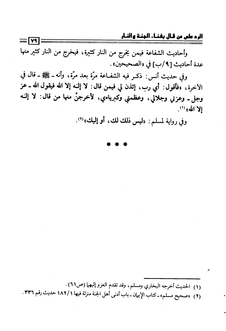(¬2) "صحيح مسلم" كتاب الإيمان - باب أدنى أهل الجنة منزلة فيها 1/182 حديث رقم 336.