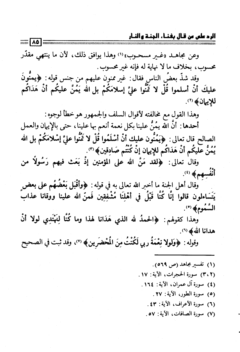 وقد شذ بعض الناس فقال: غير ممنون عليهم من جنس قوله: {يَمُنُّونَ عَلَيْكَ أَنْ أَسْلَمُوا قُلْ لا تَمُنُّوا عَلَيَّ إِسْلامَكُمْ بَلِ اللَّهُ يَمُنُّ عَلَيْكُمْ أَنْ هَدَاكُمْ لِلْإِيمَانِ} (¬2) .