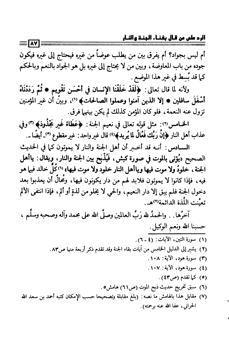 (¬2) يشير إلى الدليل الخامس من آيات بقاء الجنة وقد تقدم ذكر أربعة منها ص 83.