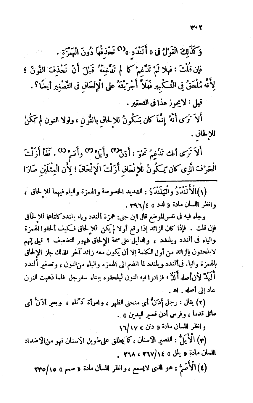 وكذلك القول في "ألندد" تحذفها دون الهمزة.