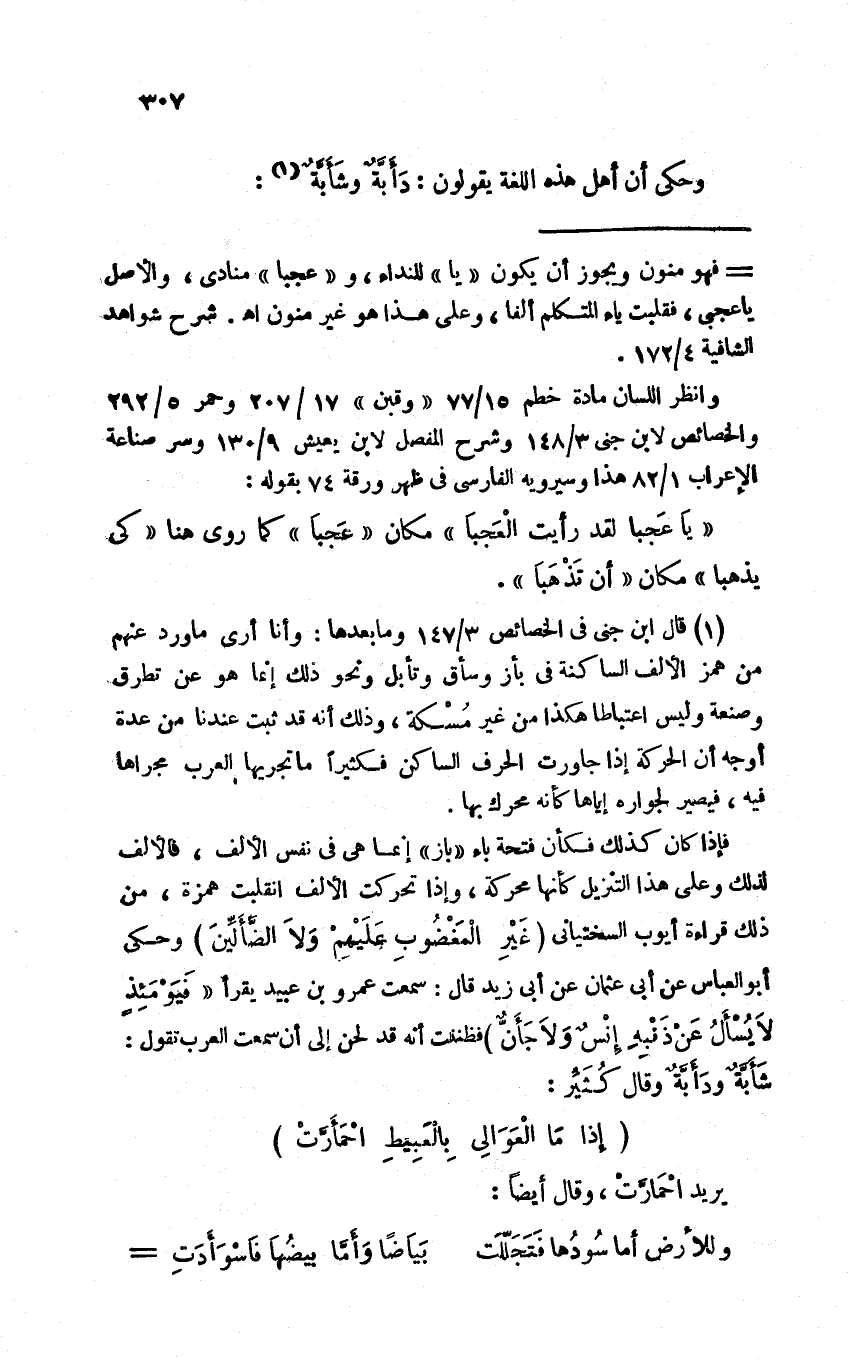 وحكي أن أهل هذه اللغة يقولون: دأبة وشأبة: