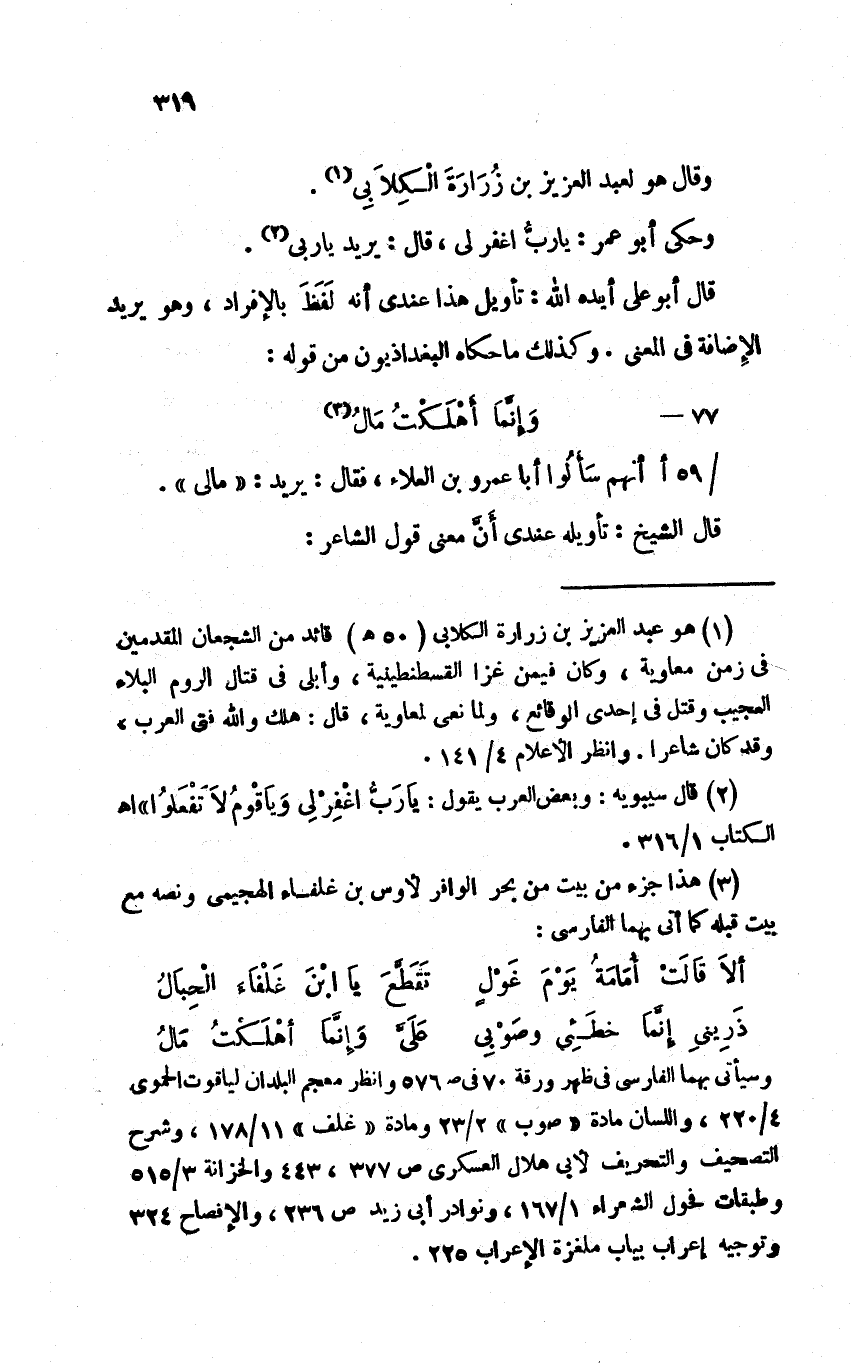 /59 أنهم سألوا أبا عمرو بن العلاء، فقال: يريد: "مالي".