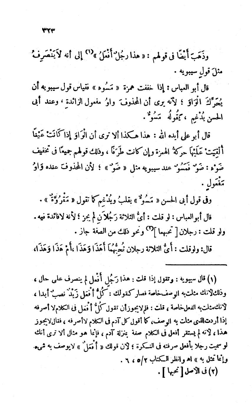 قال أبو العباس: إذا خففت همزة "مسوء" فقياس قول سيبويه أن يحرك الواو؛ لأنه يرى أن المحذوف واو مفعول الزائد، وعند أبي الحسن يدغم، يقوله مسو.