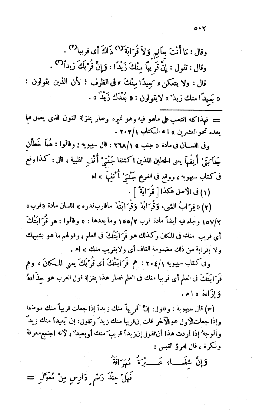 وقال: تقول: إن قريبًا منك زيدًا، وإن قربك زيدًا.