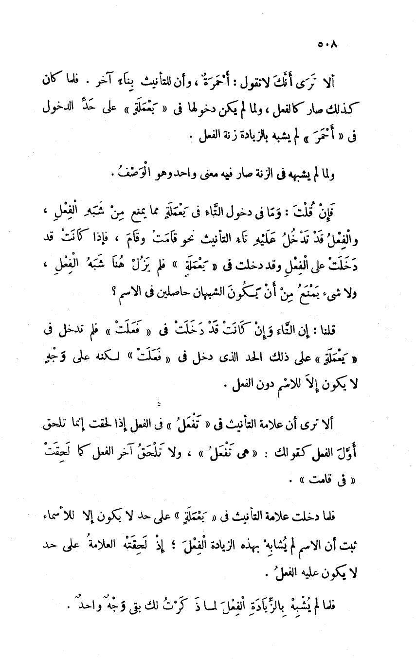فلما دخلت علامة التأنيث في "يعملةٍ" على حد لا يكون إلا للأسماء ثبت أن الاسم لم يشابه بهذه الزيادة الفعل؛ إذ لحقته العلامة على حد لا يكون عليه الفعل.
