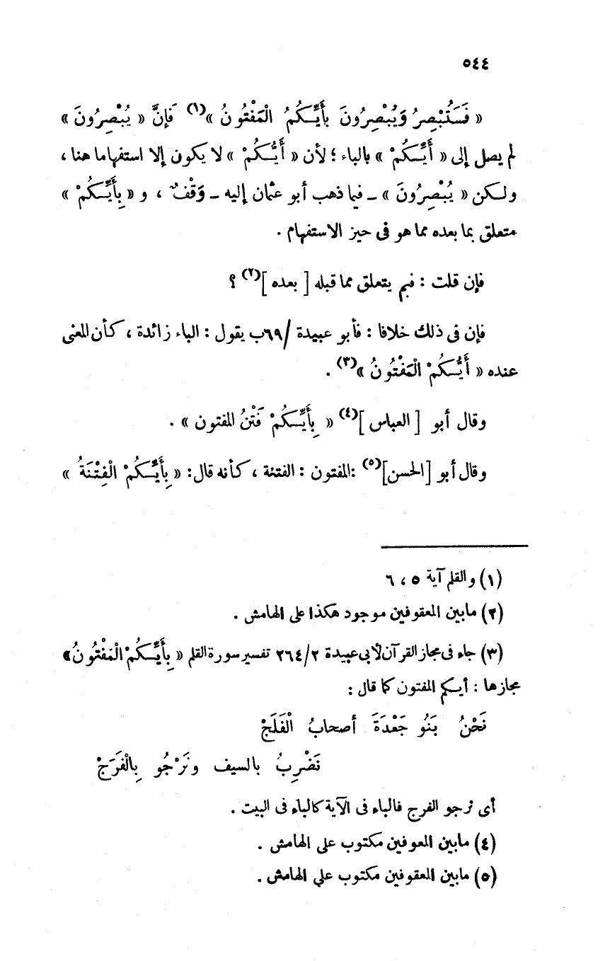 وقال أبو [العباس] "بأيكم فتن المفتون".