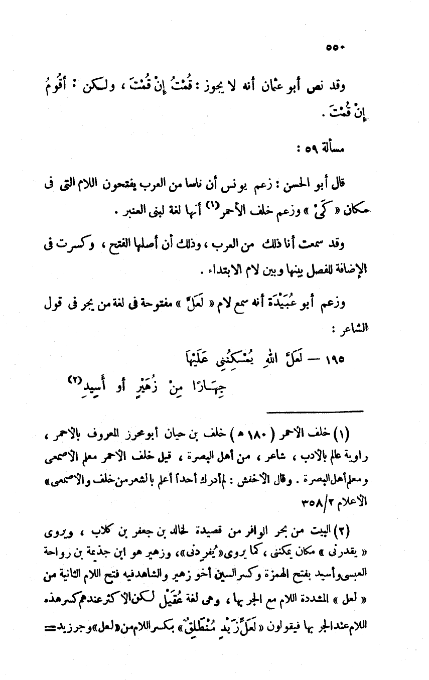 قال أبو الحسن: زعم يونس أن ناسًا من العرب يفتحون اللام التي في مكان "كي" وزعم خلف الأحمر أنها لغة لنبي العنبر.