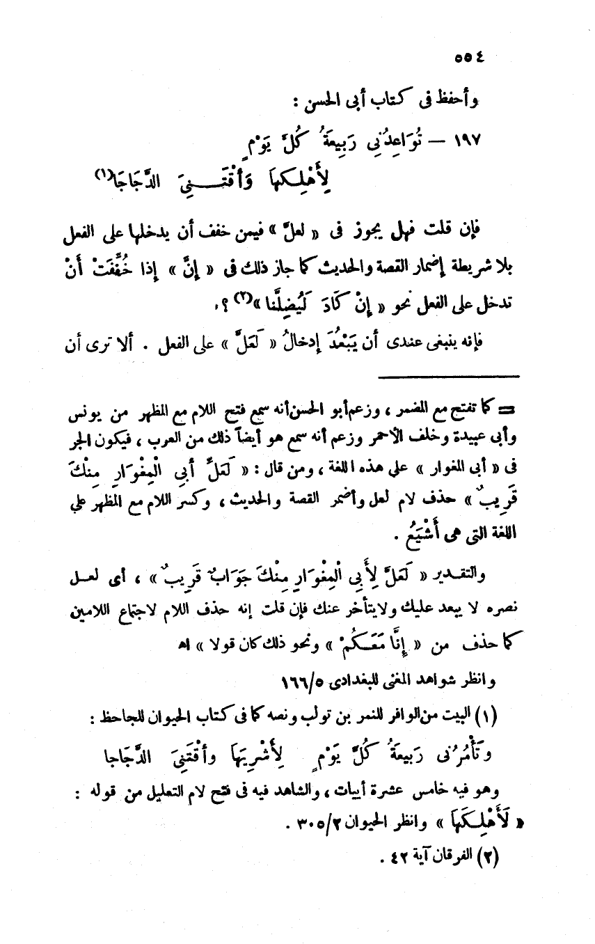 فإن قلت فهل يجوز في "لعل" فيمن خفف أن يدخلها على الفعل بلا شريطة إضمار القصة والحديث كما جاز ذلك في "إن" إذا خففت أن تدخل على الفعل نحو "إن كاد ليضلنا"؟