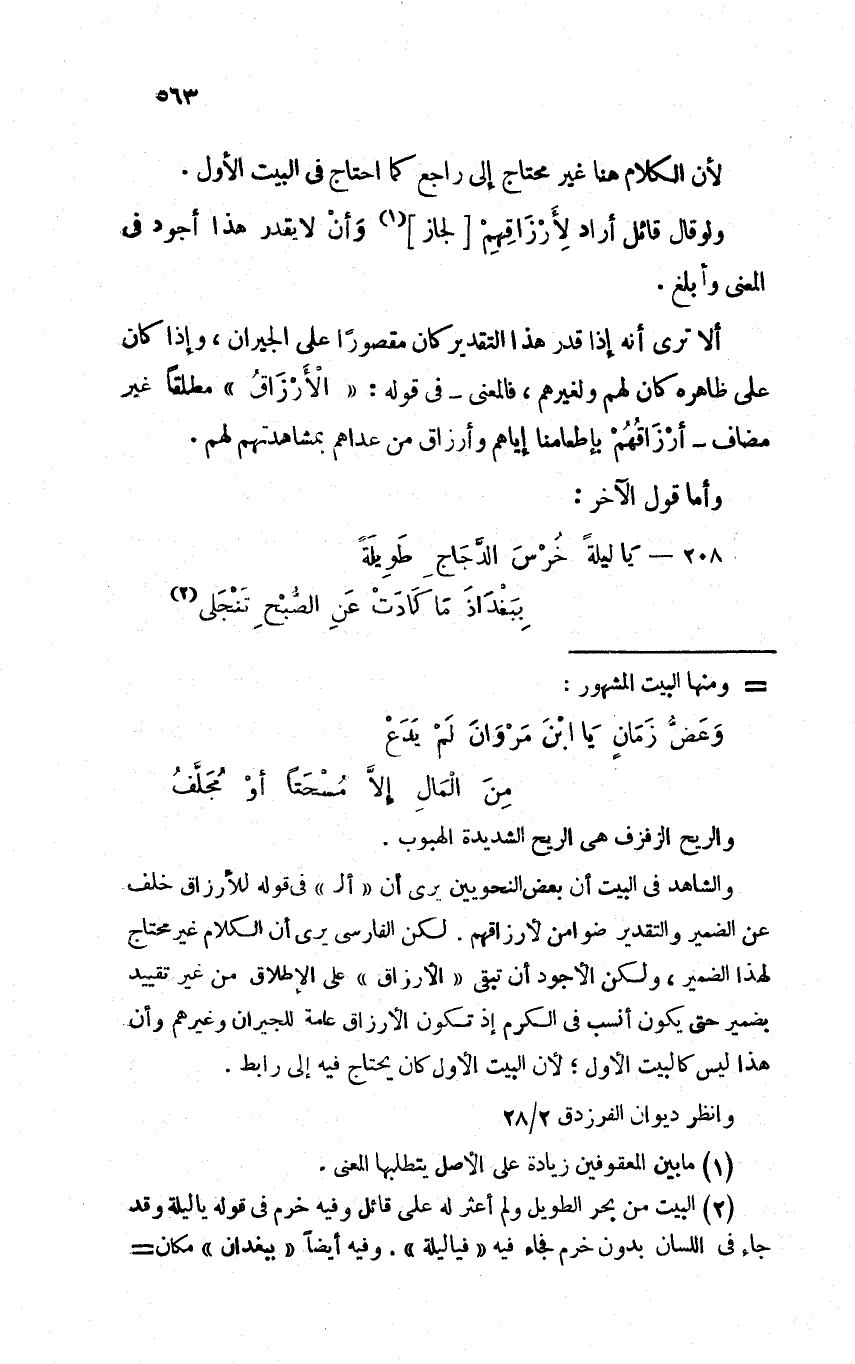 ولو قال قائل أراد لأرزاقهم [لجاز] وأن لا يقدر هذا أجود في المعنى وأبلغ.
