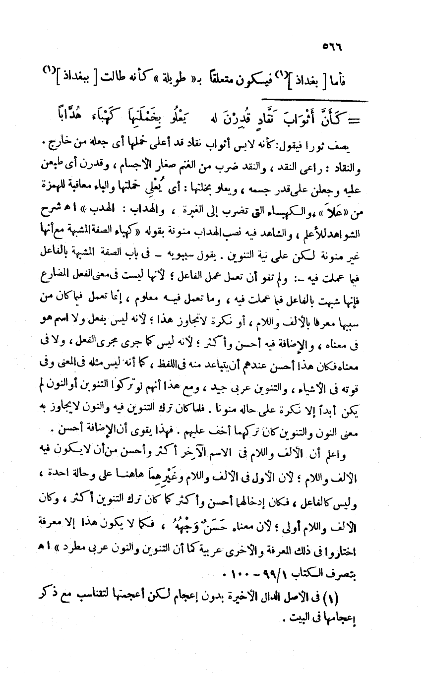 فأما [بغداذ] فيكون متعلقًا بـ "طويلة" كأنه طالت [ببغداذ]