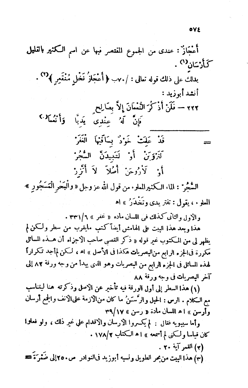 أعجاز: عندي من الجموع المقتصر فيها عن اسم الكثر بالقليل كأرسانٍ.