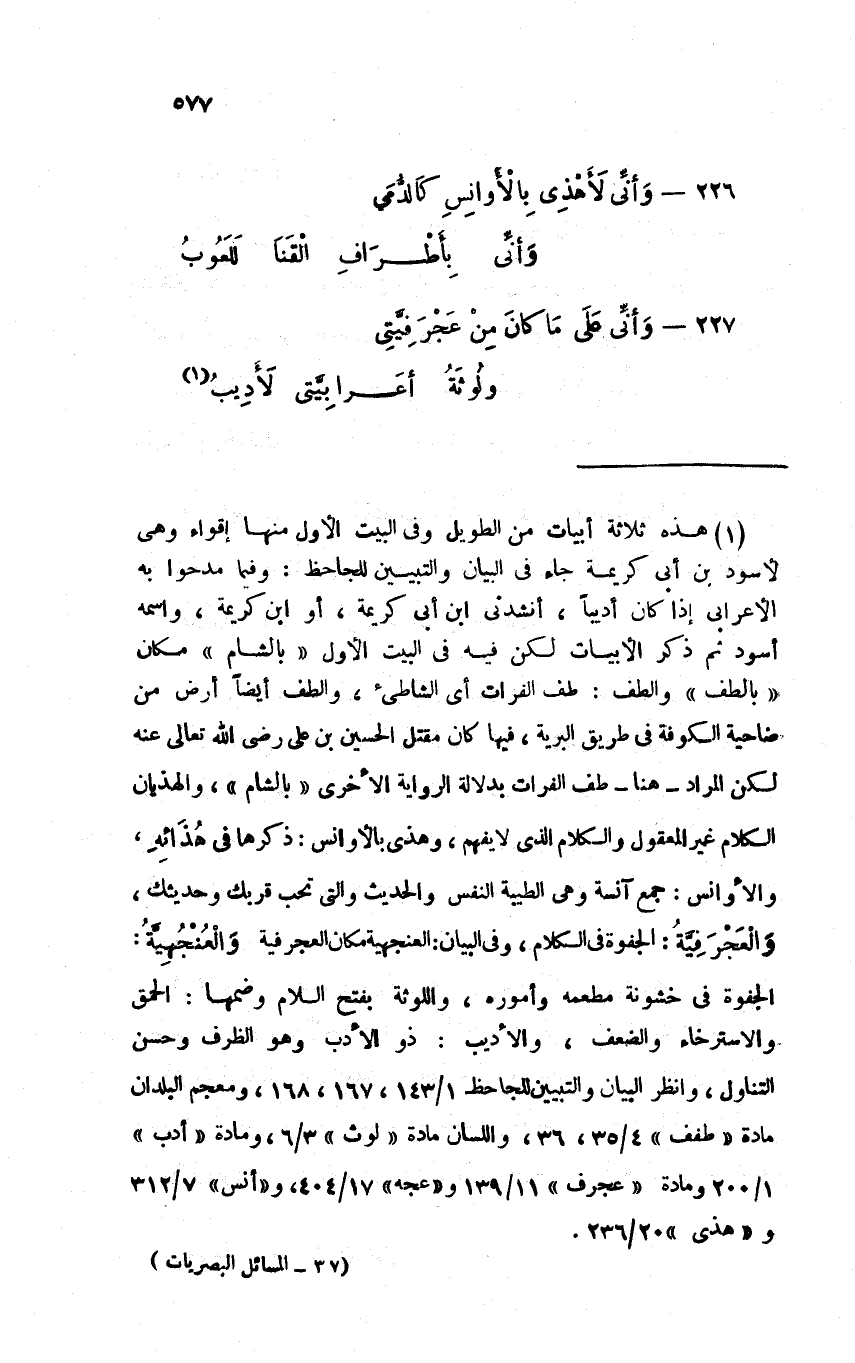 227 - وأنى على ما كان من عجر فيتي ... ولوثةُ أعرابيتي لأديبُ