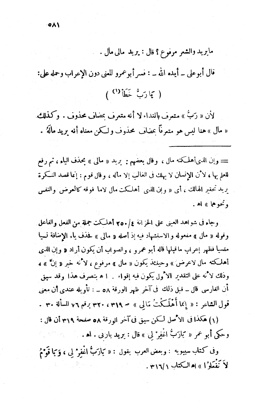 لأن "رَبُّ" متعرف بالنداء لا أنه متعرف بمضاف محذوف. وكذلك "مال" هنا ليس هو متعرفاً بمضاف محذوف ولكن معناه أنه يريد ماله.