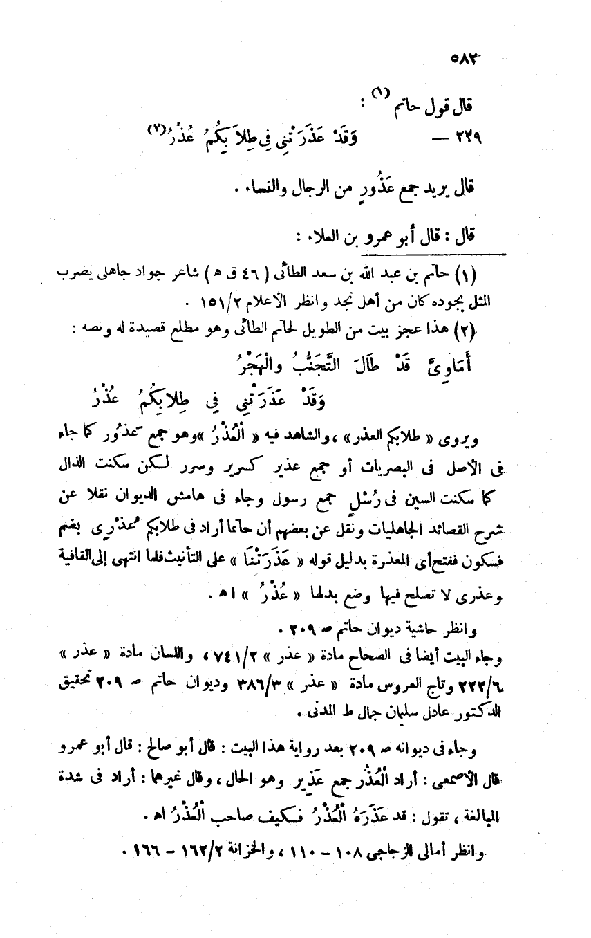229 - وقد عذرتني في طلابكم غُذْرُ