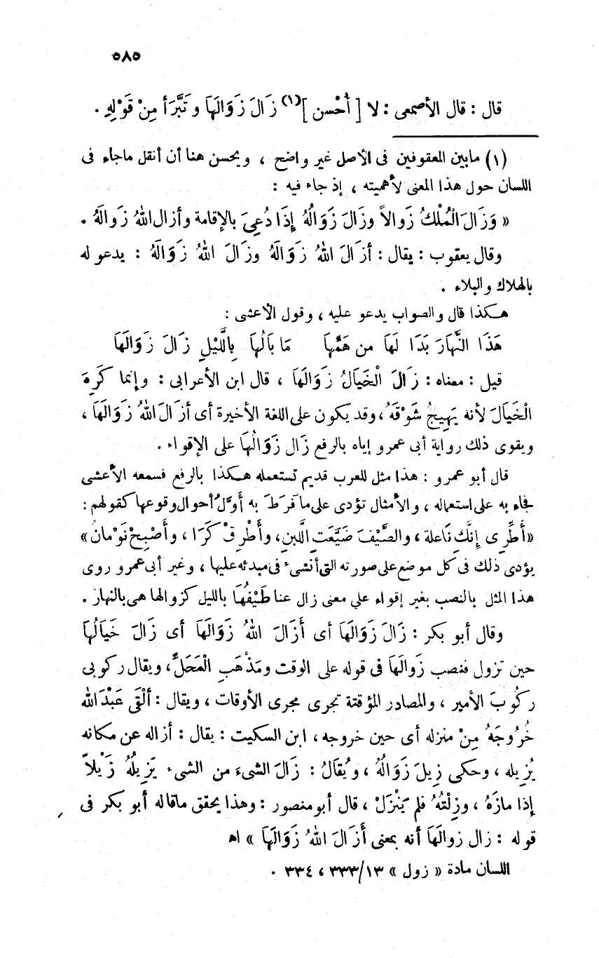 قال: قال الأصمعي: لا [أحسن] زال زوالها وتبرأ من قوله.