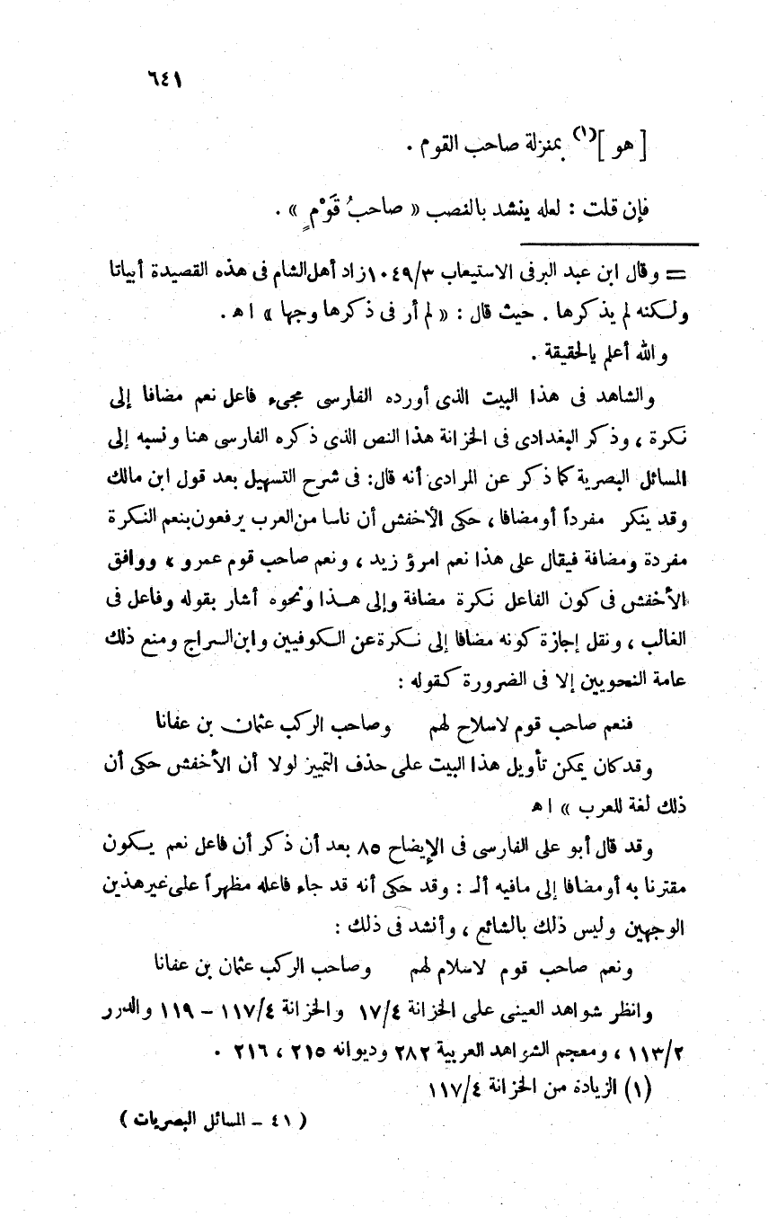 فإن قلت: لعله ينشد بالنصب "صاحبُ قومٍ".