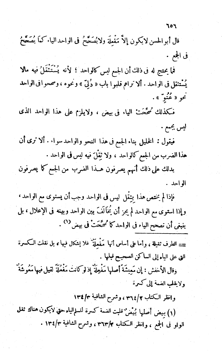 فيقول: الخليل بناء الجمع في هذا النحو والواحد سواء. أل ترى أن هذا الضرب من الجمع كالواحد، ولا ثقل فيه ليس في الواحد.