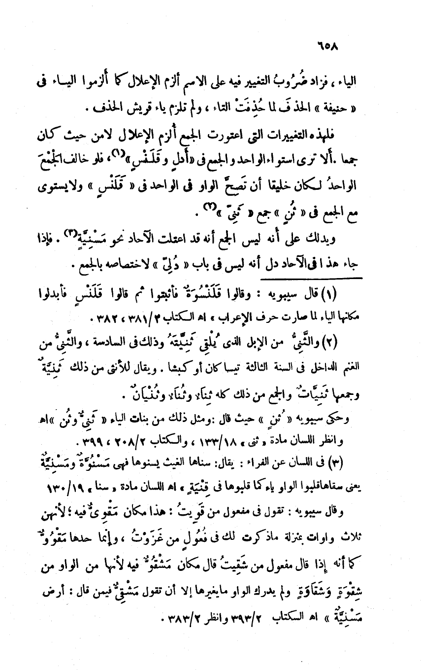 فلهذه التغييرات التي اعتورت الجمع ألزم الإعلال لا من حيث كان جمعاً. ألا ترى استواء الواحد والجمع في "أدلٍ وقَلَنْسٍ"، فلو خالف الجمعَ الواحدُ لكان خليقاً أن تصح الواو في الواحد في "قلَنْسٍ" ولا يستوي مع الجمع في "ثُنٍ" جمع "ثَنِيّ".