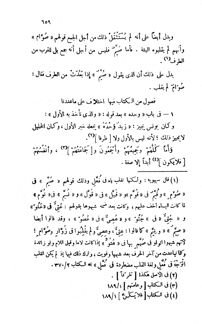 ويدل أيضاً على أنه لم يُستثقلْ ذلك من أجل الجمع قولهم "صُوَّام" وأنهم لم يقلبوه البتة. فأما صميمٌ فليس من أجل أنه جمع بل للقرب من الطرف.