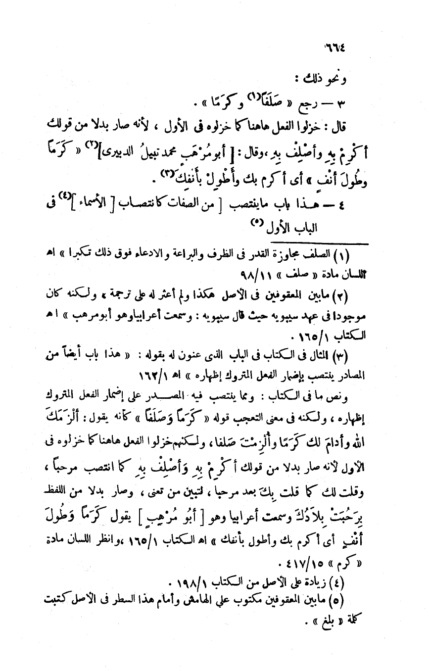 قال: خزلوا الفعل هاهنا كما خزلوه في الأول، لأنه صار بدلاً من قولك أكرِمْ به وأصْلِفْ به، وقال: [أبو مُرْهَبٍ محمد نبيل الدبيري] "كرماً وطول أنفٍ" أي أكرم بك وأطولْ بأنفك.