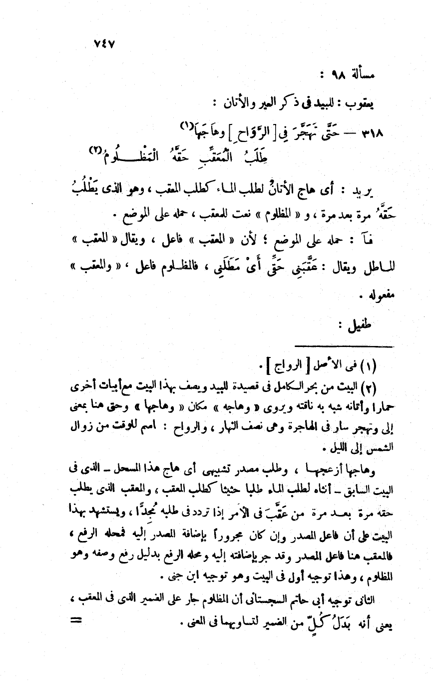 318 - حتى تهجر في [الرواح] وهاجها ... طلبُ المعقبِ حقهُ المظلومُ