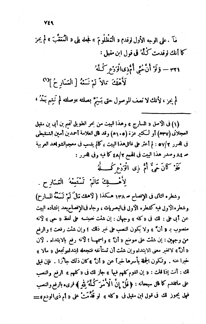 فآ. على الوجه الأول لو قدم "الْمَظْلُومَ" فجعله يلي "الْمُعَقِّبَ" لم يجز كما أنك لو قدمت كُلهُ في قول ابن مقبل: