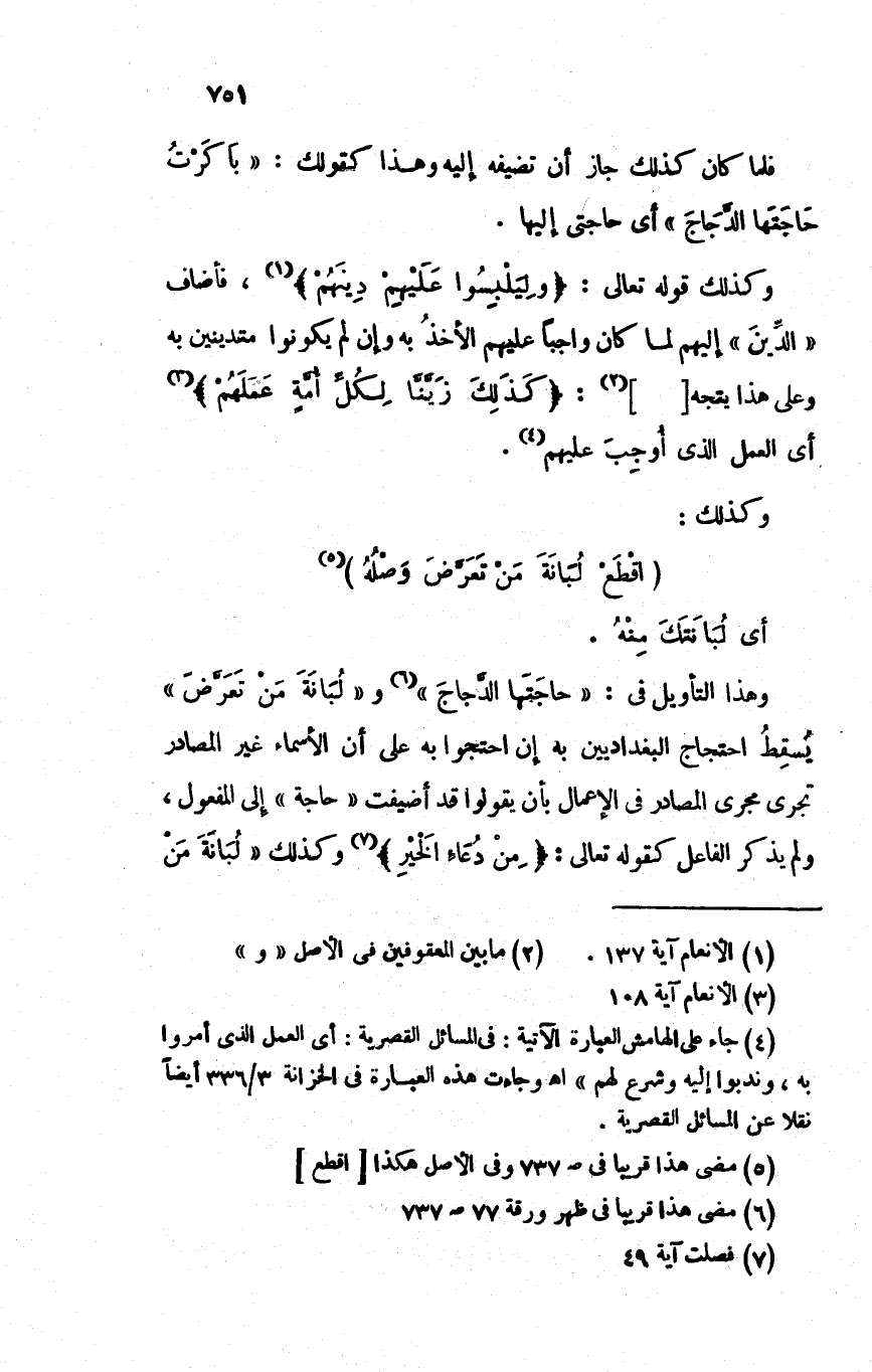 وكذلك قوله تعالى: (وليلبسوا عليهم دينهُمْ)، فأضاف "الدينَ" إليهم لما كان واجباً عليهم الأخذُ به وإن لم يكونوا متدينين به وعلى هذا يتجه []: (كذلك زينا لكل أمةٍ عملهمْ) أي العمل الذي أوجب عليهم.