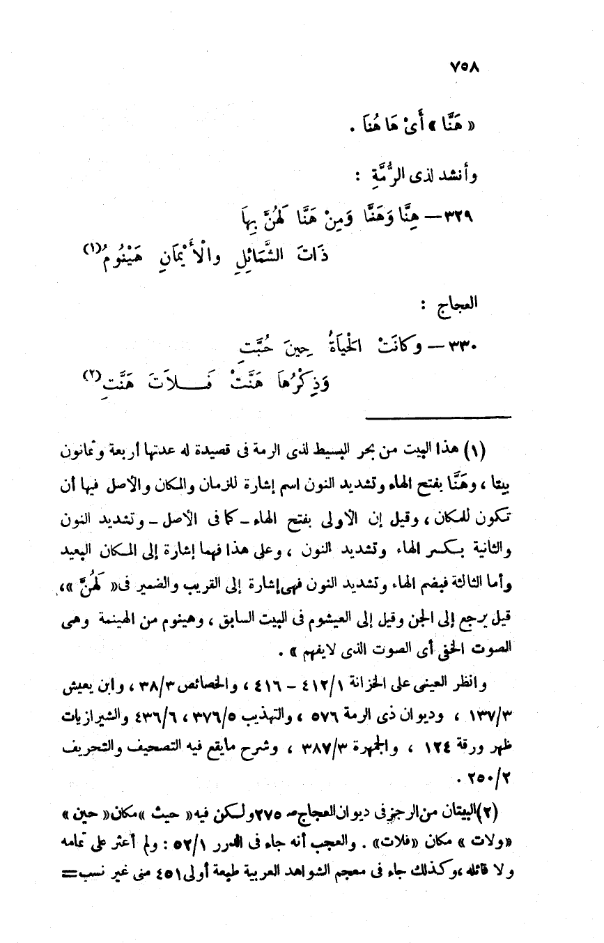 329 - هِنَّا وهَنَّا ومِنْ هَنَّا لَهُنَّ بها ... ذات الشمائل والأيمانِ هينُومُ