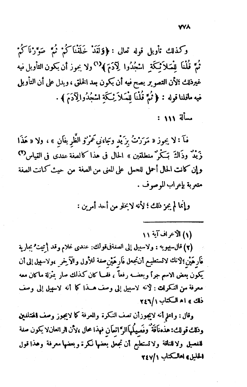 وكذلك تأويل قوله تعالى: (ولقد خلقناكمْ ثم صورناكم ثم قلنا للملائكة اسجدوا لآدم) ولا يجوز أن يكون التأويل فيه غير ذلك؛ لأن التصوير يصح فيه أن يكون بعد الخلق، ويدل على أن التأويل فيه ما قلنا قوله: (ثم قلنا للملائكة اسجدوا لآدم).