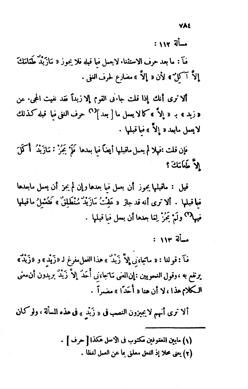 ألا ترى أنك إذا قلت جاءني القوم إلا زيداً فقد نفيت المجيء عن "زيد" بـ "إلا" كما لا يعمل ما [بعد] حرف النفي فيما قبله كذلك لا يعمل ما بعد "إلا" فيما قبلها.