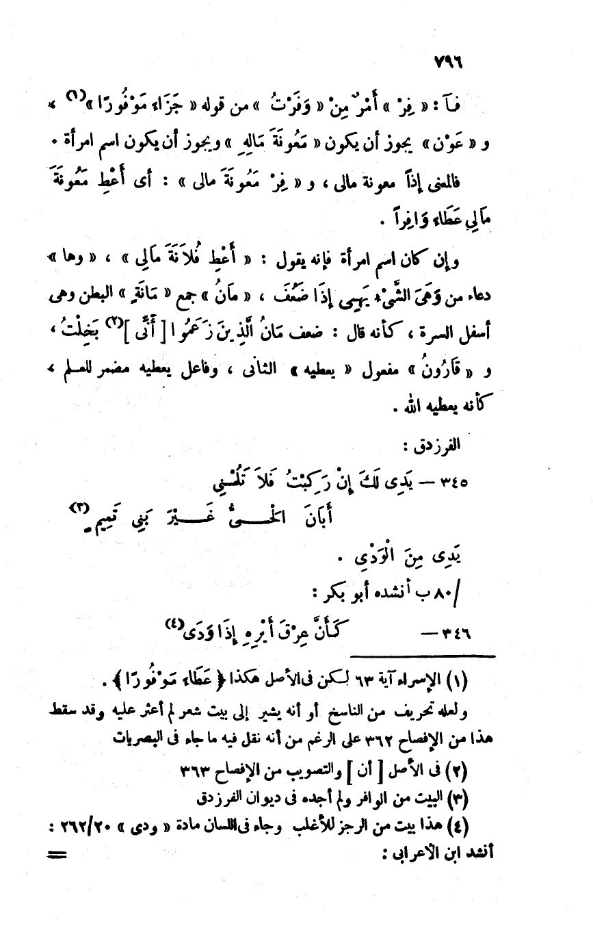فآ: "فِرْ" أمْرٌ مِنْ "وفَرْتُ" من قوله "جزاء موفورا"، و"عَوْن" يجوز أن يكون "مَعُونَةَ مالِهِ" ويجوز أن يكون اسم امرأة.