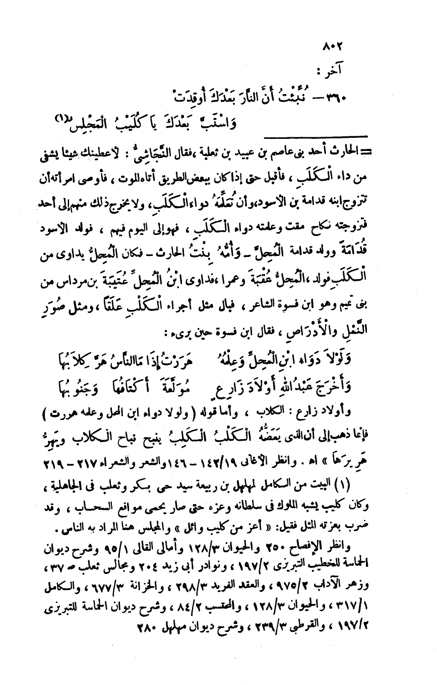 360 - نبئتُ أن النار بعدك أوقدتْ ... واستب بعدك يا كليبُ المجلسُ