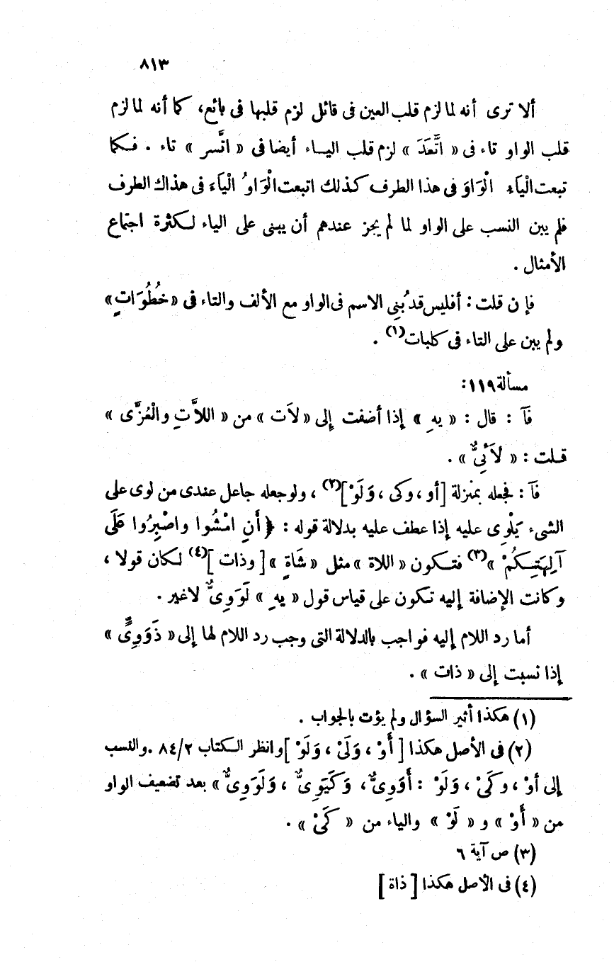 أما رد اللام إليه فواجب بالدلالة التي وجب رد اللام لها إلى "ذوويٌّ" إذا نسبت إلى "ذات".