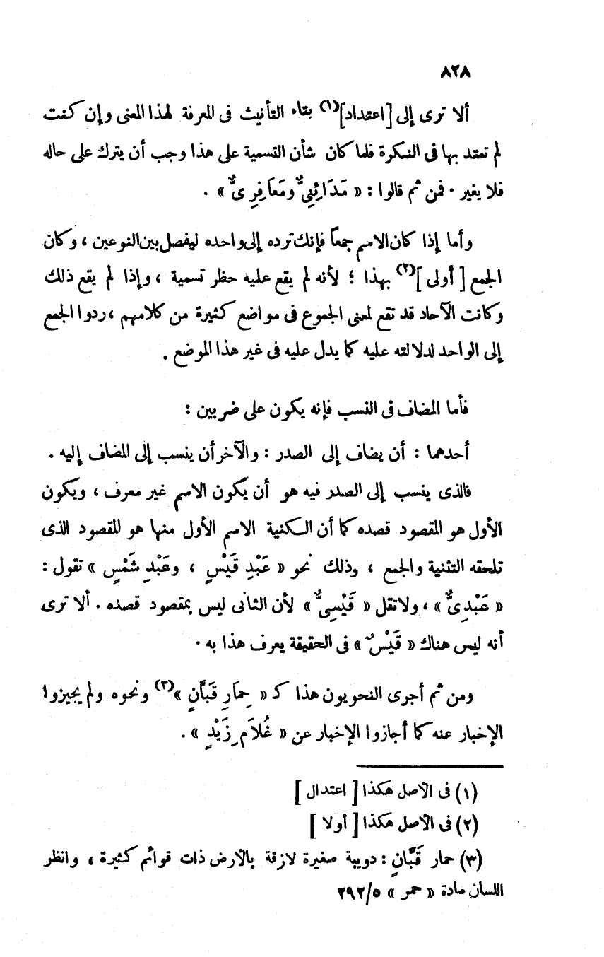 ومن ثم أجرى النحويون هذا كـ"حِمارِ قبانٍ" ونحوه ولم يجيزوا الإخبار عنه كما أجازوا الإخبار عن "غُلام زيدٍ".
