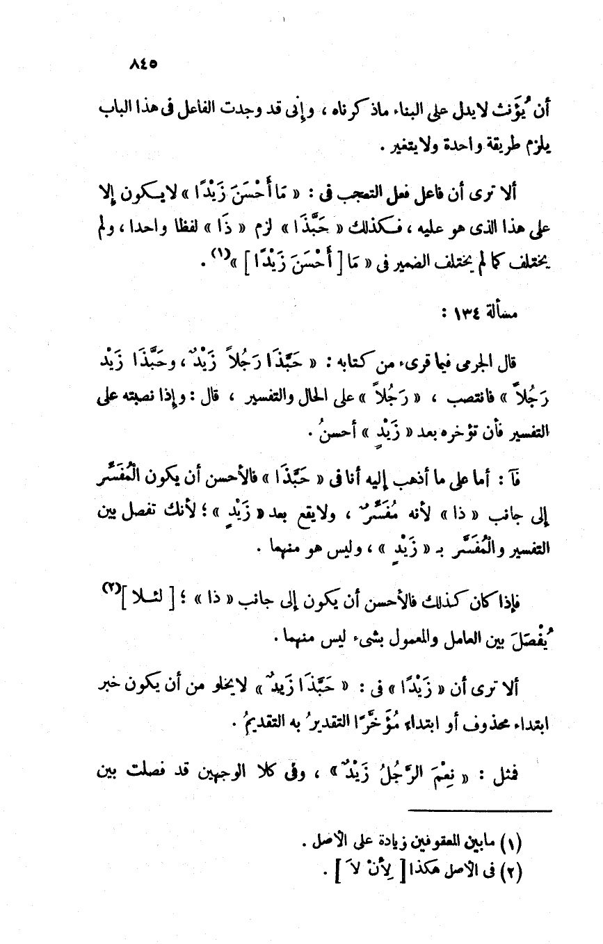 فآ: أما على ما أذهب إليه أنا في "حبذا" فالأحسن أن يكون المُفسر إلى جانب "ذا" لأنه مفسرٌ، ولا يقع بعد "زيدٍ"؛ لأنك تفصل بين التفسير والمفسر بـ "زيدٍ"، وليس هو منهما.