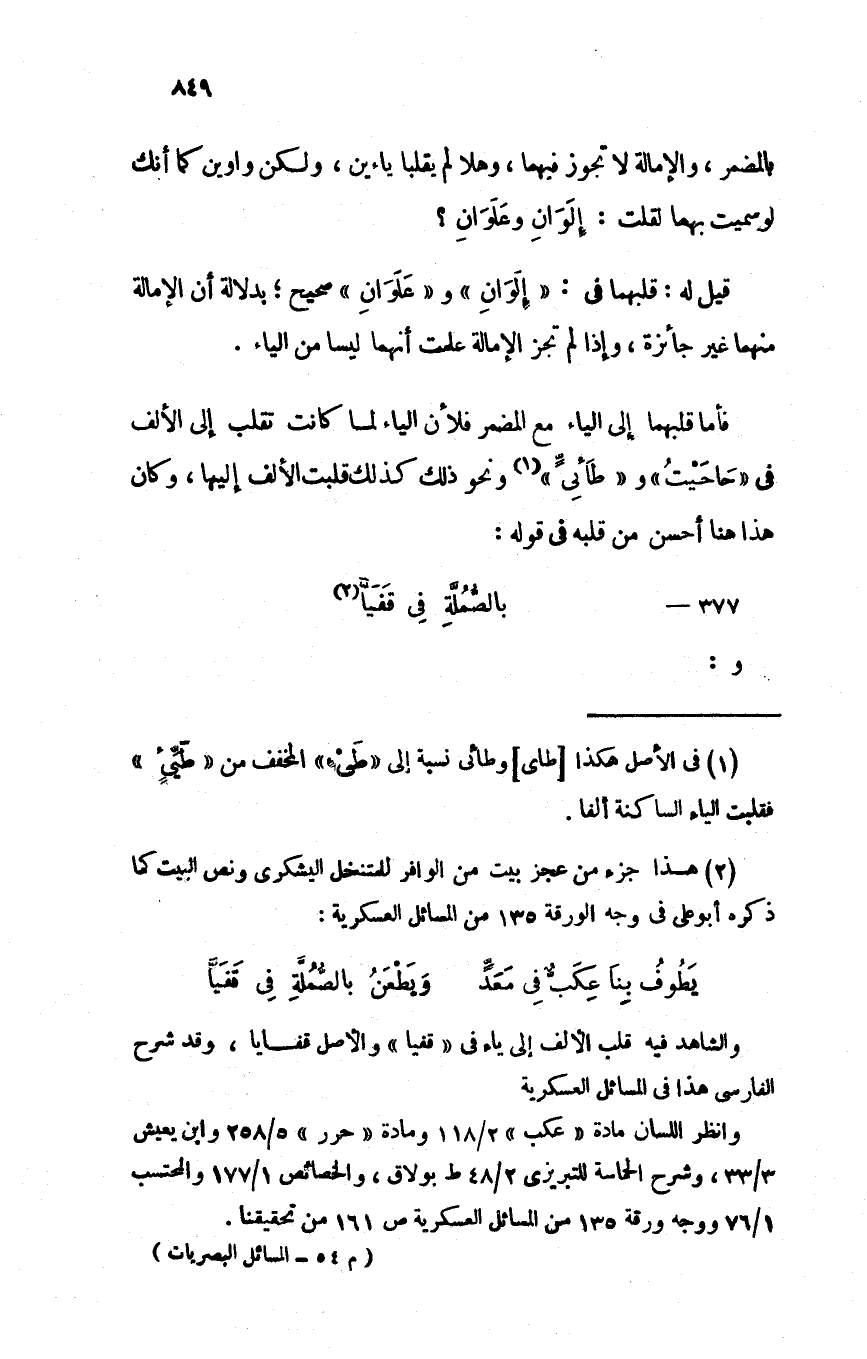 فأما قلبهما إلى الياء مع المضمر فلأن الياء لما كانت تقلب إلى الألف في "حَاحَيْتُ" و"طائي" ونحو ذلك كذلك قلبت الألف إليها، وكان هذا هنا أحسن من قلبه في قوله: