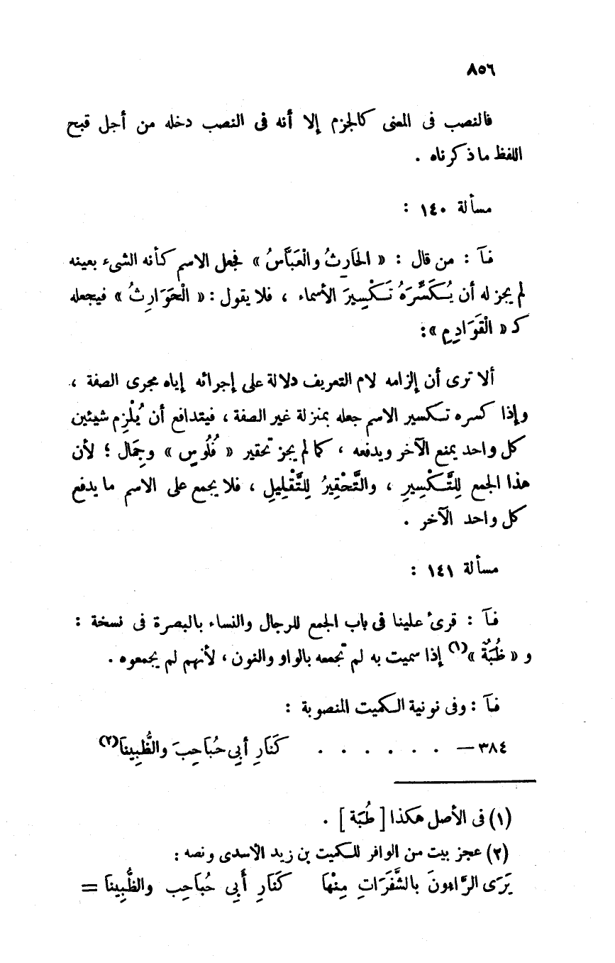 فآ: من قال: "الحارثُ والعباسُ" فجعل الاسم كأنه الشيء بعينه لم يجز له أن يكسره تكسير الأسماء، فلا يقول: "الحوارثُ" فيجعله كـ"القوادم":