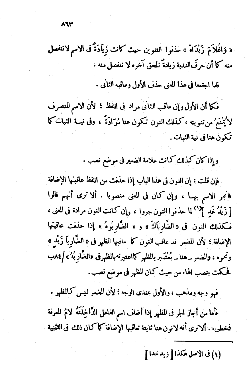 "واغلامَ زيداهْ" حذفوا التنوين حيث كانت زيادةٌ في الاسم لا تنفصل منه كما أن حرف الندبة زيادةٌ تلحق آخره لا تنفصل منه.
