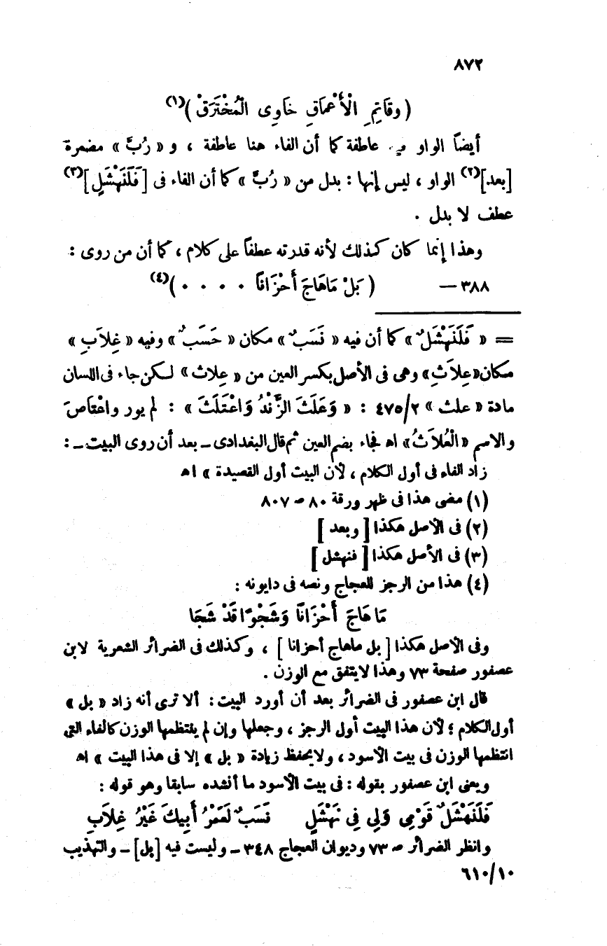 أيضاً الواو في عاطفة كما أن الفاء هنا عاطفة، و"رُبَّ" مضمرة [بعد] الواو، ليس إنها: بدل من "رُبَّ" كما أن الفاء في [فلنهشلٍ] عطف لا بدل.