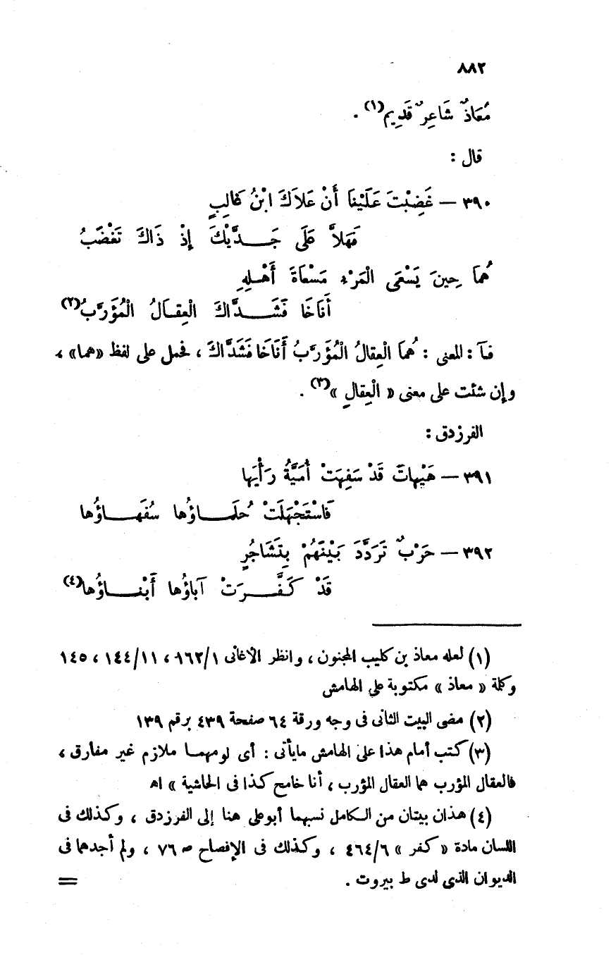 392 - حربٌ تردد بينهم بتشاجرٍ ... قد كفرت آباؤها أبناؤها