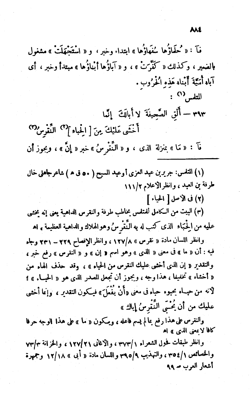 393 - ألق الصحيفة لا أبالك إنما ... أخشى عليك من [الحباء] النفوس