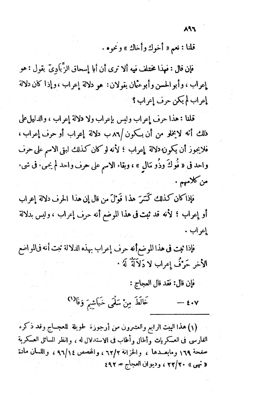 فإن قال: فهذا مختلف فيه ألا ترى أن أبا إسحاق الزيادي يقول: هو إعراب، وأبو الحسن وأبو عثمان يقولان: هو دلالة إعراب، وإذا كان دلالة إعراب لم يكن حرف إعراب؟