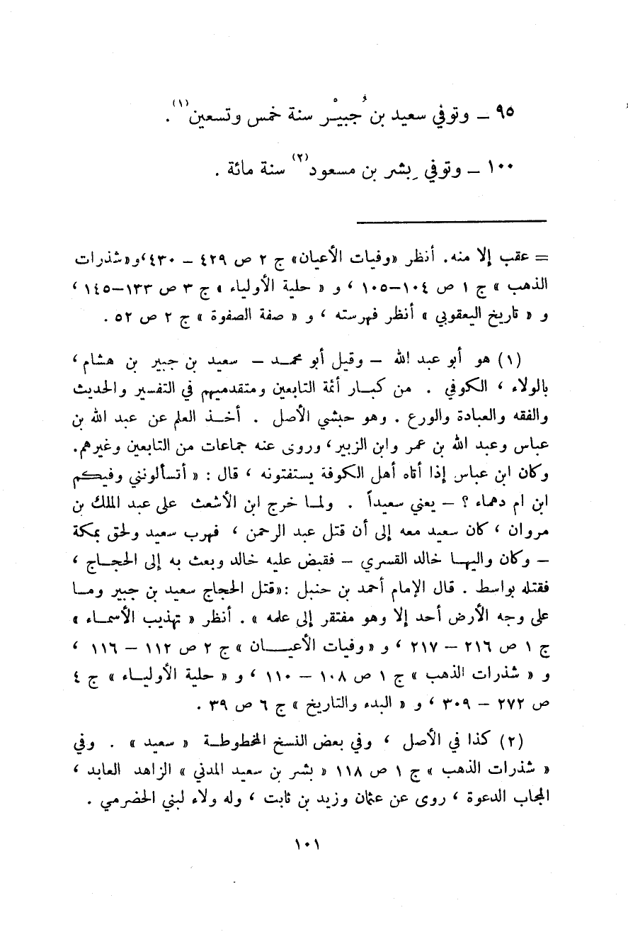 وتوفي سعيد بن جبير سنة خمس وتسعين.