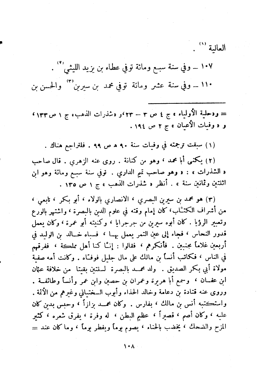 وفي سنة عشر ومائة توفي محمد بن سيرين والحسن بن
