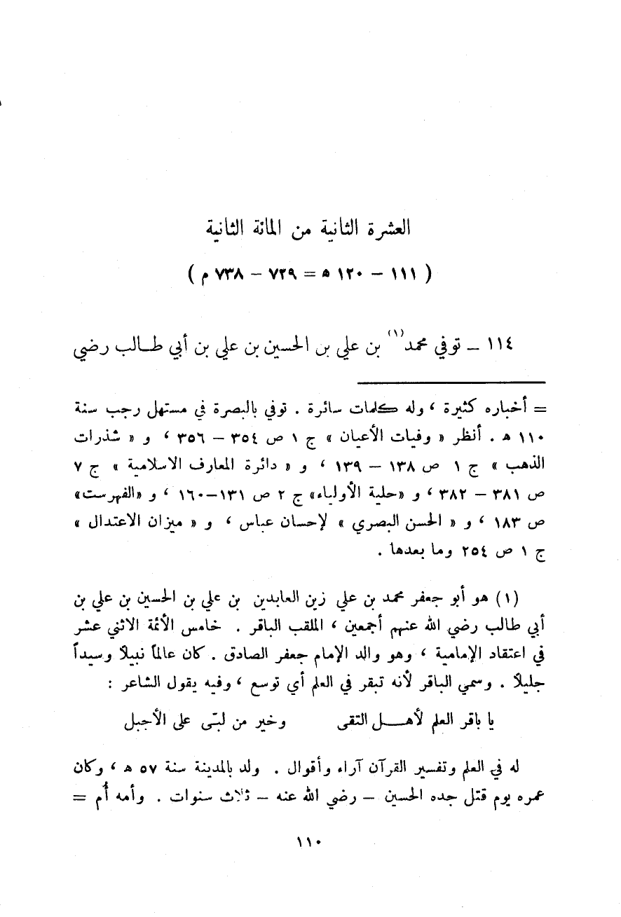 111 - 120هـ، 729 - 738م توفي محمد بن علي بن الحسين بن علي بن أبي طالب رضي