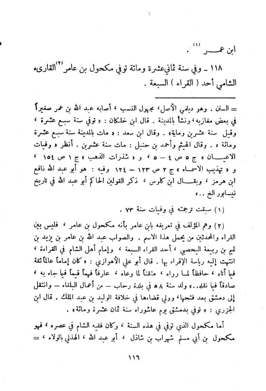وفي سنة ثماني عشرة ومائة توفي مكحول بن عامر القارئ الشامي أحد القراء السبعة.