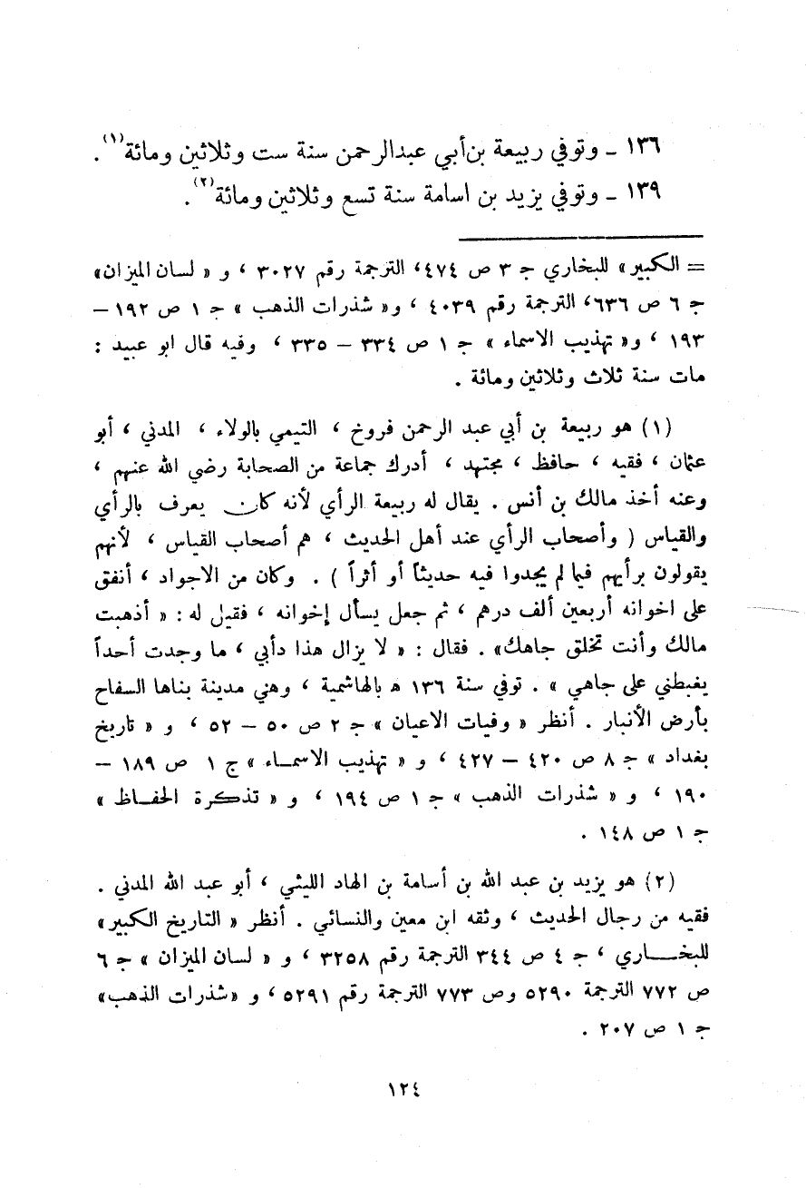 وتوفي ربيعة بن أبي عبد الرحمن سنة ست وثلاثين ومائة.